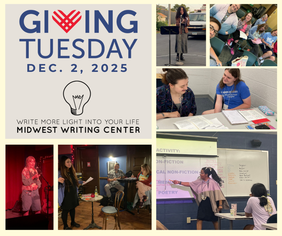 We are writing, like so many other nonprofits are, to ask for your support this Giving Tuesday (December 3, which kicks off our year-end giving campaign) by renewing or starting a membership so that we can continue to provide high-quality, low-cost literary programming to our community as we have for going on 45 years.