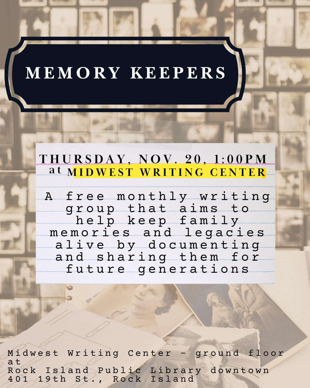 One of the greatest gifts you can give to your children and future generations is to keep your family stories alive. Please join our new Memory Keepers Group as we come together with a common interest and goal to preserve our family stories through the written word.