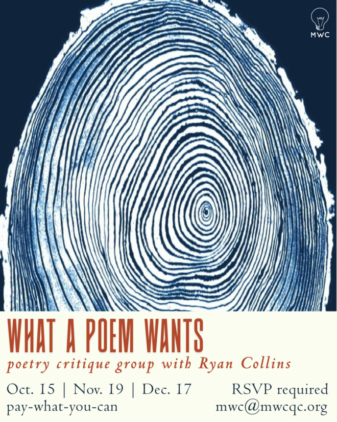 What a Poem Wants: New Poetry Critique Group at MWC, facilitated by Ryan Collins