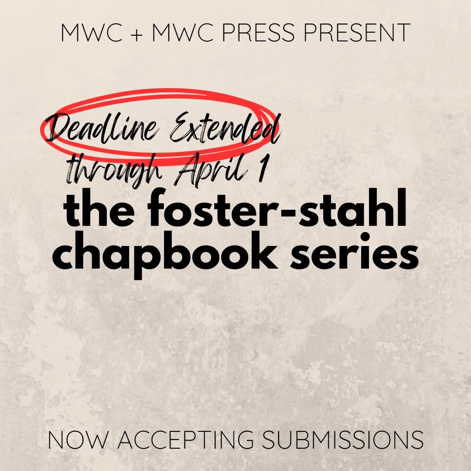 MWC Press, the press imprint of The Midwest Writing Center, is thrilled to announce a new publication series: The Foster-Stahl Chapbook Series, which looks to publish outstanding short collections of poetry, prose (fiction or nonfiction), or hybrid work from poets and writers living in the upper Midwest region (this includes the following states served by Arts Midwest: IL, IN, IA, MI, MN, ND, OH, SD, WI). Submissions for the third year of the series are open now. Submissions accepted through April 1, 2026.