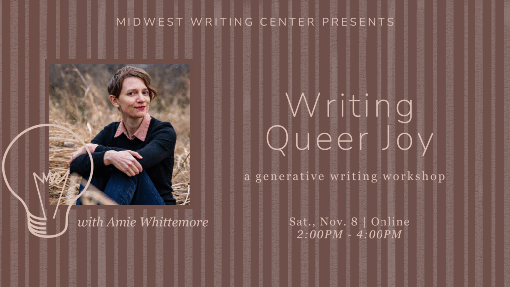 The Midwest Writing Center is proud to present a poetry workshop from prolific poet and experienced teacher Amie Whittemore that helps writers of all levels write queer joy.